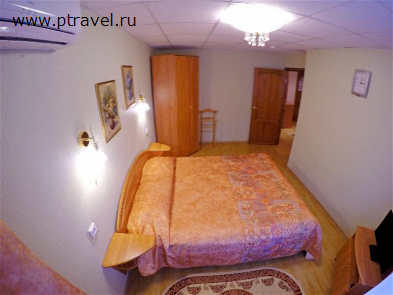 - 2-местный 1-комнатный «Супер-Люкс» №48: S=27 м2, без балкона, с ванной, журнальным столиком, шкафом-купе, гладильной доской, кондиционером, микроволновой печью, посудой, телевизором, утюгом, феном, холодильником, электрочайником, мягкой мебелью, спальным гарнитуром с 2-х спальной кроватью.