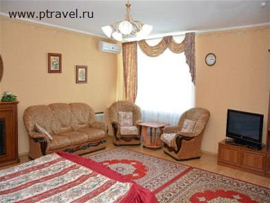 - 2-местный 1-комнатный «Супер-Люкс» №38: S=42 м2, без балкона, с ванной, журнальным столиком, шкафом-купе, гладильной доской, кондиционером, микроволновой печью, посудой, телевизором, утюгом, феном, холодильником, электрочайником, мягкой мебелью, спальным гарнитуром с 2-х спальной кроватью.