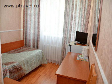 - 1-местный 1-комнатный 2 категории повышенной комфортности 3 этаж (№№346-347): одна комната S=12 м2, без балкона, стул, кресло, журнальный столик, шкаф, посуда, телевизор, холодильник, электрочайник, односпальная кровать (ширина = 1 м 60 см), санузел с душ-поддоном.