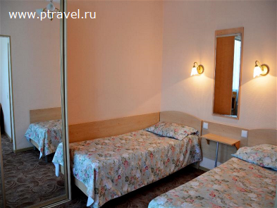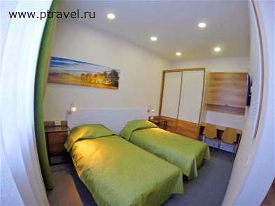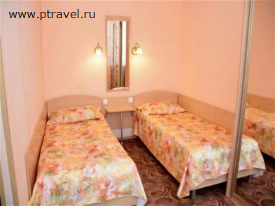 - 2-местный 1-комнатный "Полулюкс", северная сторона: одна комната S=18 м2, журнальный столик, шкаф-купе, посуда, холодильник, электрочайник, 2 односпальные кровати, санузел: душ-поддоном.
