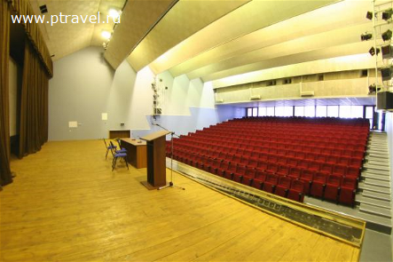киноконцертный зал с профессиональной сценой размером 17 Х 3 Х 6 метров и экраном для демонстрации презентаций, кинопоказов на 450 мест