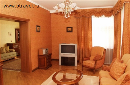 2-местный 2-комнатный номер (одно дополнительное место) – двуспальная кровать, музыкальный центр, телефон, гостиная с мягкой мебелью, посуда, санузел с ванной, кондиционер, банные принадлежности, телевизор.