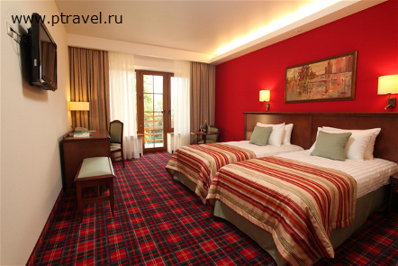 Все номера с прекрасным видом на лес и пруд, оборудованы современным плазменным телевизором "32 дюйма" с интерактивным телевидением, оснащены системой индивидуального кондиционирования, феном, электронным замком, мини-баром, сейфом с возможностью хранения ноутбука, Wi-Fi. Рум-сервис "24 часа". Большинство номеров имеют балкон.