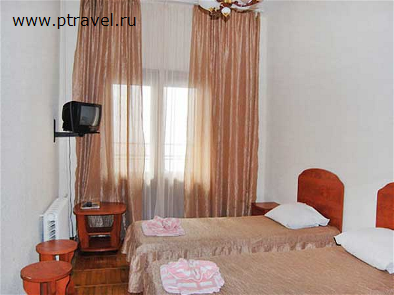 2-местный 1-комнатный "Повышенной комфортности" (24). Номер с удобствами (совмещенный санузел, умывальник, душ, бойлер). В номере: ТВ, холодильник, кондиционер, двухспальная или две односпальные кровати, трюмо, встроенный шкаф, две тумбочки, балкон с видом на море с летней мебелью. Размещение до 3 человек. Дополнительное место еврораскладушка.