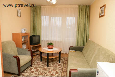 Во всех номерах есть холодильник, спутниковое ТВ, лоджия, санузел с душем или ванной.