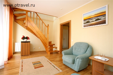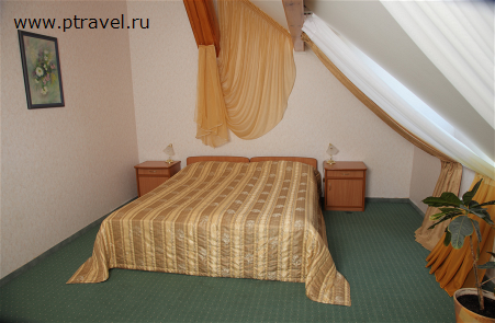 2-местный 2-комнатный "Люкс": двуспальная кровать, добавочное третье место, письменный стол, телефон, спутниковое TV, холодильник, ванная комната, фен, туалет, бесплатный Wi-Fi.