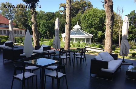 Расположение отеля уникально еще и тем, что именно в здешних местах располагаются знаменитые на весь мир запасы янтаря, золотистый песок побережья напрямую говорит об этом. Здесь также пролегает самая широкая пляжная полоса, а территория самого отеля – это исторический парк с вековыми деревьями.