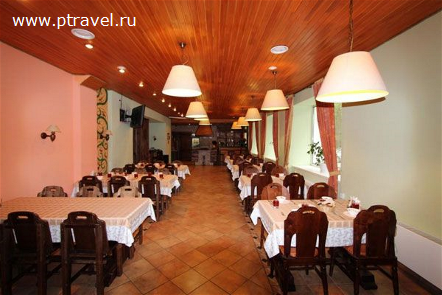 На первом этаже гостиницы расположен ресторан, предлагающий блюда, как традиционной русской кухни, так и местной алтайской. При желании можно заказать комплексное питание в ресторане из расчета 800 рублей на человека.