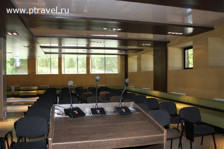 - конференц-зал, оборудованный проектором, экраном, микрофонами на 120 мест