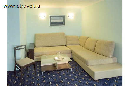 - 2-местный 2-комнатный "Люкс" (Ш-Л). стол, ТВ, мини-холодильник, фен, чайник. Туалетная комната: WC, раковина, душ, ванна, биде. 2 осн. места + 1 доп. место (диван).