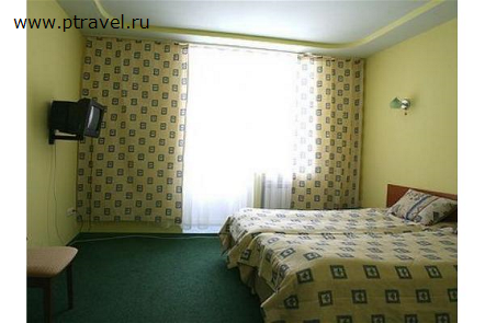 2-местный 1-комнатный «Стандарт» (12 номеров). Это однокомнатный номер на пером этаже в корпусе №3 с балконами и видом на реку: 6 номеров / 1 номер без балкона и вида на реку. В номере: две односпальные кровати с возможностью совмещенного использования, платяной шкаф, тумбочки, стол, стул, ТВ. Туалетная комната: WC, раковина, душ. 2 осн.места + 1 доп.место (раскладная кровать)