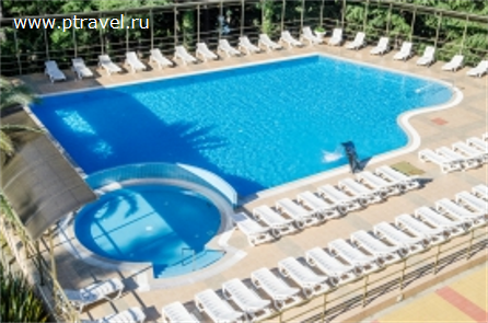 открытый бассейн (имеет две чаши: для детей и взрослых) с пресной водой, с подогревом, современной круглосуточной фильтрацией воды, автоматической поддержкой химического состава воды