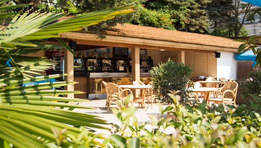 Оборудованный пляжный комплекс в 100 м от здания гостиницы.
