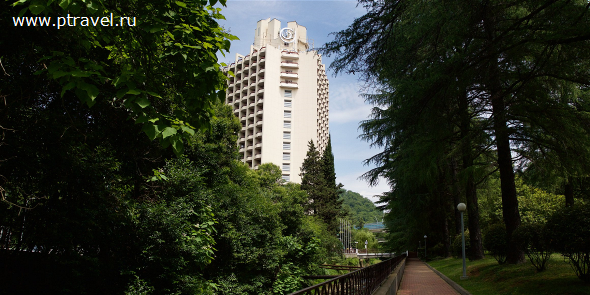 от центрального ж/д вокзала Сочи на маршрутном такси № 110, 122 или автобусе № 112 до остановки "Спутник".
