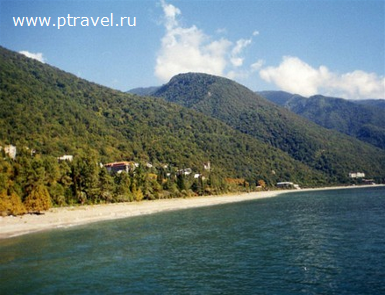 Общественным транспортом: поездом или самолетом – до г. Адлер, далее на общественном транспорте или на такси до Казачьего рынка (8 км от ж/д вокзала, 15 км от аэропорта), затем пройти пешком около 500 метров до пограничного поста на р. Псоу до границы России и Абхазии. После самостоятельного прохождения паспортного и таможенного контроля до места отдыха можно доехать на автобусе, маршрутном такси или воспользоваться услугами частных водителей.