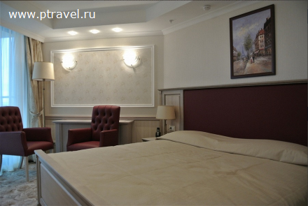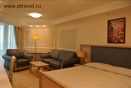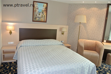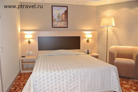 Номер состоит из одной комнаты, санузла, прихожей, балкона. В номере имеются 2 кровати, кресло-кровать, журнальный стол, две прикроватные тумбочки, центральное кондиционирование, холодильник с мини-баром, сейф, кабельное спутниковое телевидение, цветной телевизор, телефон. Санузел оснащен ванной с душем, умывальником, унитазом. В прихожей - тумба для багажа, гардеробный шкаф, вешалка.