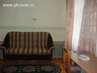 1-комнатный 2-х местный номер с удобствами, телевизором и холодильником. В номере две 1-спальные кровати и кресло-кровать (дополнительное место).