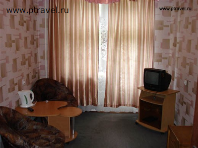 Все 2-местные номера оснащены: ТВ, радио, ванной комнатой (душ, туалет, умывальник).