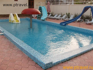 открытый большой бассейн (1500 куб. метров) с мини-аквапарком