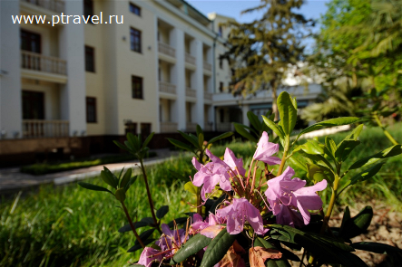Корпус № 2 - 3-этажное здание, расположенное в окружении живописного парка с величественными соснами, вечнозелеными магнолиями, благородным лавром, пальмами, эвкалиптами, олеандрами, в 400 метрах от моря: