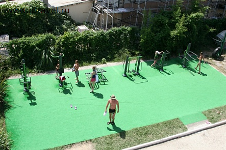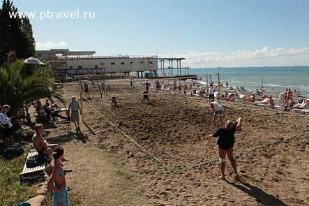 На пляже работает бар, бильярдная, спортивные тренажеры, пункт проката пляжного инвентаря, лодочная станция.