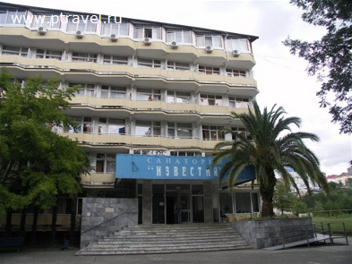 Санаторий "Известия" расположен в Адлерском районе Сочи, в 350 м от моря. Здравница находится в дендропарковой зоне (14 га) и имеет собственный оборудованный пляж длиной 180 м. Время пути от аэропорта Адлер 10 минут, от ж/д станции Адлер - 5 минут.