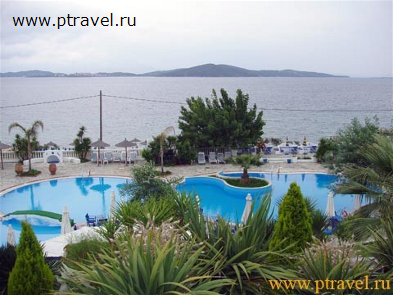 Отель расположен в 120 км от аэропорта, в 9 км от города Урануполи, на полуострове Афон (3-й палец полуострова Халкидики).
