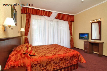 2-местный 1-комнатный «Стандарт» (23 м2): комната с большой французской кроватью или двумя раздельными кроватями, автономная система кондиционирования, телефон, телевизор, мини-бар, мини-сейф, фен, санузел – ванная или душевая кабина, балкон.