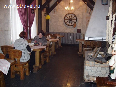 Люкс-коттедж: спальня с двуспальной кроватью, в гостиной камин и мягкая мебель, телевизор, телефон. В прихожей холодильник. В ванной комнате: душевая кабина, туалет, раковина, фен.