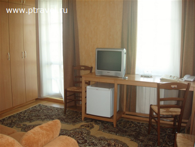 Во всех номерах: балкон, спутниковое TV, телефон, кондиционер, фен, мини-бар, сейф, круглосуточный roomservice, вечерняя подготовка ко сну.