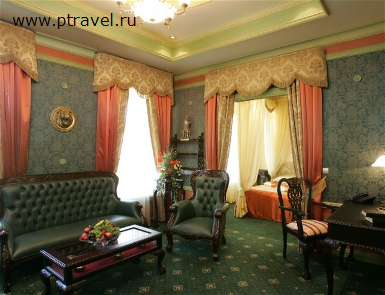 Номера категории «Сюит» редставлены элегантными номерами с балконами. Интерьер номеров выполнен в венецианском стиле. Теплые бордовые тона, роскошная широкая кровать и мягкие подушки – все создано для того, чтобы Вы могли полностью насладиться отдыхом после работы или прогулок по Петербургу.