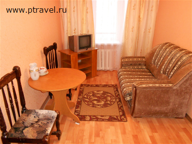 В каждом номере: холодильник (кроме 1-2-местных 1-комнатных номеров), телевизор, балкон, ванная комната: душ, туалет, раковина.