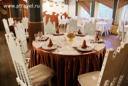Питание осуществляется в основном ресторане (основное меню около 300 блюд, специальное детское, диетическое и вегетарианское меню, суши), ночном баре (большая винная и сигарная карты), банкетных залах, летнем кафе-баре, двенадцати оборудованных шашлычных беседках, барах плавательного бассейна и боулинга, а также в номерах и любом месте отдыха. Завтрак - "шведский стол" уже входит в стоимость проживания.