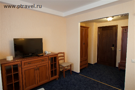 - 2-местный 2-комнатный. Категория номера: двухкомнатный двухместный. Кол-во номеров: 83. Площадь номера: 30,6 метров. Основных мест – 2, Доп. мест – 2 (кресло-кровать). Мебель в номере: 2 кровати, кресло, прикроватные тумбочки, сервант. Оборудование: телевизор ЖК, мини-холодильник, телефон, электрочайник, набор посуды. Санузел оборудован душем. В номере – балкон. Ежедневный сервис: уборка номера, смена постельного белья, смена полотенец.
