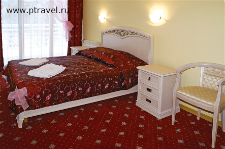 2-местный 2-комнатный «Люкс» Номер состоит из двух комнат: гостиной с мягкой мебелью и спальни с двуспальной кроватью. В номере - балкон, ванная комната, совмещенная с санузлом. На полу - ковровое покрытие и плитка.