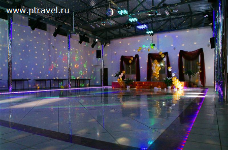 зал для проведения дискотек (современное оборудование, проекционный телевизор, экран, дымовая машина, лазерная установка, караоке)