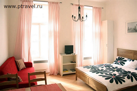 Апартаменты на 4 чел.(2+2) 1 комнатная квартира с кухонным уголком, 30 м2, на втором этаже полностью реконструированного дома 19 века, с лифтом.