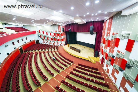 кинозал на 250 мест (колонки, 2 шнуровых микрофона, мобильная аппаратура «Фендер», сцена с занавесом 72 кв. м, артистическая комната 14 кв.м)