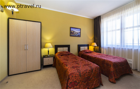 В номере: две изолированные комнаты, обставленные современной мебелью (3 кровати и диван), есть телевизор, телефон, холодильник, лоджия. В туалетной комнате – душевая кабина. Площадь номера 37 кв. м.