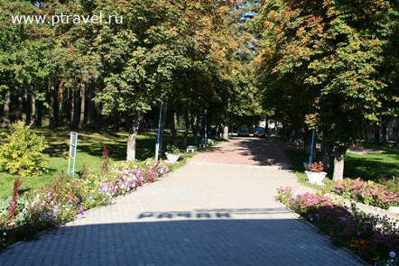 На территории санатория произрастают сосна, можжевельник, ель, берёза, тополь, туя, яблоневый сад и др.