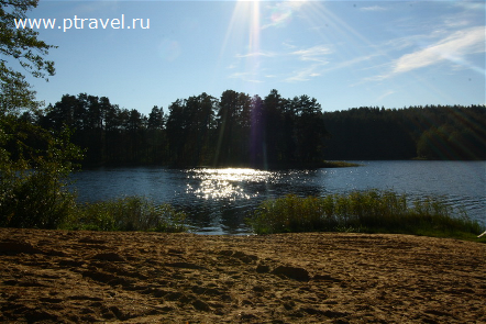 из г.Санкт-Петербурга - автомобилем до г. Полоцк, далее по трассе Полоцк – Минск до дер. Сорочино , повернуть направо на г.п. Ушачи, в Ушачах налево по указателю «Лесные озёра» (9 км.)