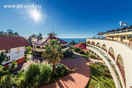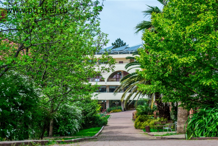 Сам отель утопает в зелени реликтовых сосен и пробковых дубов. Вот уж где великолепно дышится. Вы только представьте, это же природная ароматерапия, смесь солей черного моря и хвойных фитонцидов! Здесь царят покой и безмятежность.