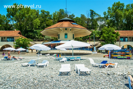 Между прочим, даже пляж, еще один природный фактор, делает все, для вашего здоровья. Он – каменистый! Природный массаж стоп! Пляж расположен в 800 м от основных корпусов, но для тех, кто хочет жить прямо у моря, есть дополнительный корпус на 5 номеров. Минута – и вы море!
