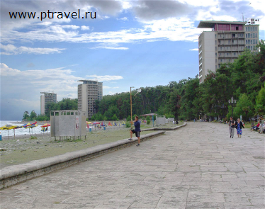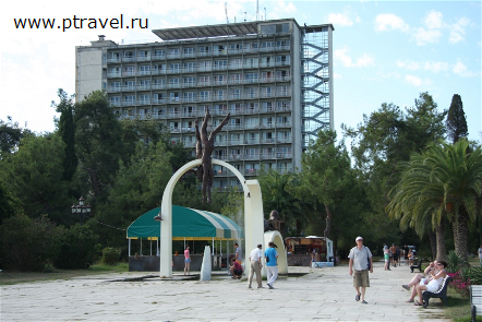 Объединение пансионатов "Курорт Пицунда" – это семь четырнадцатиэтажных корпусов, расположенных на самом берегу залива.