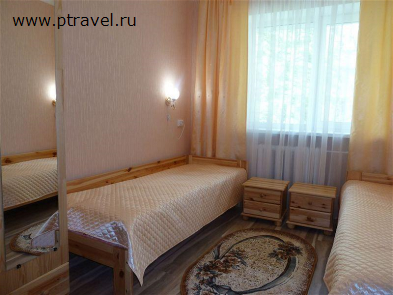 двухместный номер (16 м кв.) с двумя кроватями, тахтой, шкафом, столом, стульями, двумя тумбочками и ТВ;