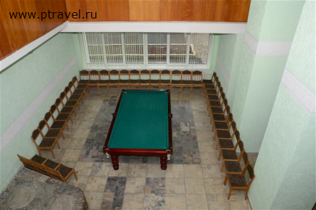 В холле корпуса на первом этаже находится пункт проката, бильярд, круглосуточный пост медсестры, библиотека, питьевой бювет с минеральной водой.