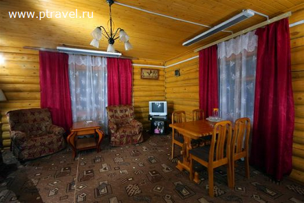 В коттедже: 1 комната с 2-мя кроватями, душ, туалет, телевизор, холодильник, чайник, комплект посуды, отопление с возможностью регулировки температуры.