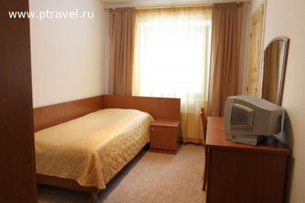 3-й блок. На I этаже расположены 4 двухместных номера категории «Люкс». На II этаже 2 двухместных номера категории «Люкс», 1 двухместный номер категории «Люкс с кухней», 1 четырехместный номер категории «Семья». На III этаже 2 двухместных номера категории «Люкс». Все номера с удобствами в номере. На II и III этаже телефон с внутренней связью отеля.