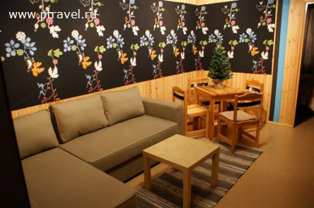 Уютная деревянная гостиница (2005 г. постройки), с номерами коттеджного типа, расположена на верху горнолыжных склонов, в ухоженной лесопарковой зоне.