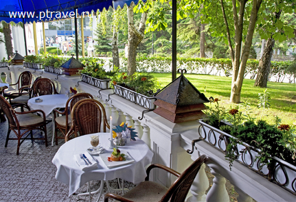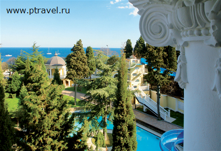 Двухместный Премьер. Однокомнатный номер средней площадью 32 кв.м. В каждом номере имеется балкон. Вид на море, набережную, город, через парк отеля на море. Ширина кроватей Twin - 110 см. 23 номера дополнительно укомплектованы раскладными диванами. Есть возможность дополнительного размещения. Количество номеров – 28.